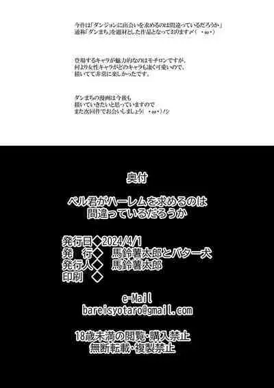 (C88) [Mirukuseiki (Sukoyaka Gyuunyuu)] Boku kara Bell-kun o Sasou no wa Machigatteiru Darou ka (Dungeon ni Deai o Motomeru no wa Machigatteiru Darou ka)