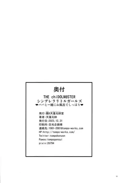 Watch (C103) [Oboro & Tempo Gensui Dou (Tempo Gensui)] THE chiDOLM@STER Cinderella Little Girls ~Papa to Isshoni Ofuro de Shippori♡~ + C103 Omakebon | Hot and Steamy Bath Time With our Daddies! (THE IDOLM@STER CINDERELLA GIRLS) [English] [Team Rabu2] (C103) [朧&天蓬元帥堂 (天蓬元帥)] THE chiDOLM@STER シンデレラリトルガールズ~パパと一緒にお風呂でしっぽり♡~ + C103おまけ本 (アイドルマスター シンデレラガールズ) [英訳]